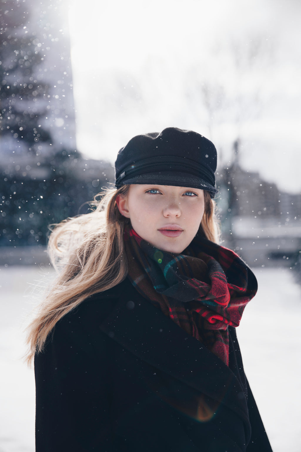 auf Wintermäntel, Parkas, Pullover, Sweater und den Beanie.